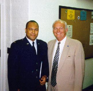 Lt. Marc O. Morris, left; John Donohue, right. Taken on the occasion of Lt. Morris' commissioning in the U.S. Air Force; and using J.D.'s lieutenant's bars, which were also his father's before him.